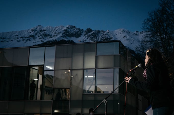 Günter Lieder, Präsident der Israelitischen Kultusgemeinde Tirol und auch wieder Schwester Notburga zeigten Ihre Solidarität und waren vor Ort.