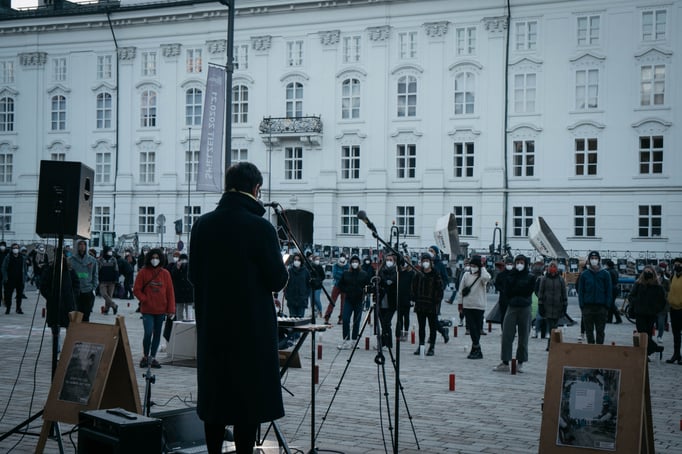 - "Brief an Bundeskanzler Kurz" von Mitorganisatorin, Uni-Dozentin und Obfrau des Vereins Fluchtpunkt Frauke Schacht.