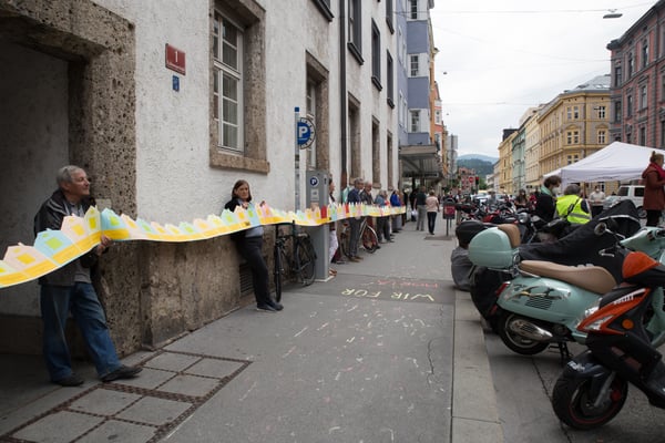 Für zwei Stunden haben wir vor der Tiroler Volkspartei Hauptgeschäftsstelle das "Schweigen der ÖVP zur Flüchtlingspolitik" in die Öffentlichkeit getragen.