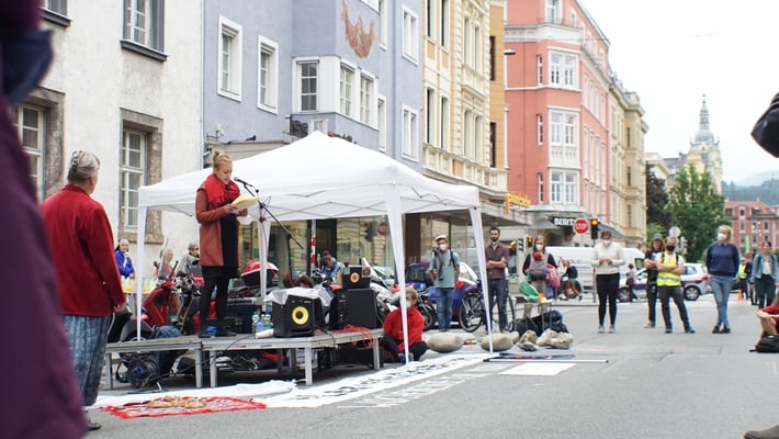 Zahlreiche Rede- und Musikbeiträge, sowie Aktionskunst, ausgehend von der Sage der Frau HItt richteten einen klaren Appell an die Landespartei ÖVP: