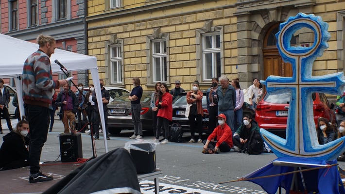 eine Kundgebung "Ein Herz aus Stein" in der Fallmerayerstraße 4 ab..