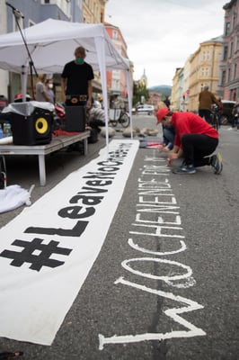 endete mit einer fulminanten Performance dreier Künstlerinnen (Leonie Drechsel, Ursula Beiler Barbara Weber). Litaneiartig wurde zuletzt von allen Anwesenden im Chor die ÖVP beschworen, Fenster