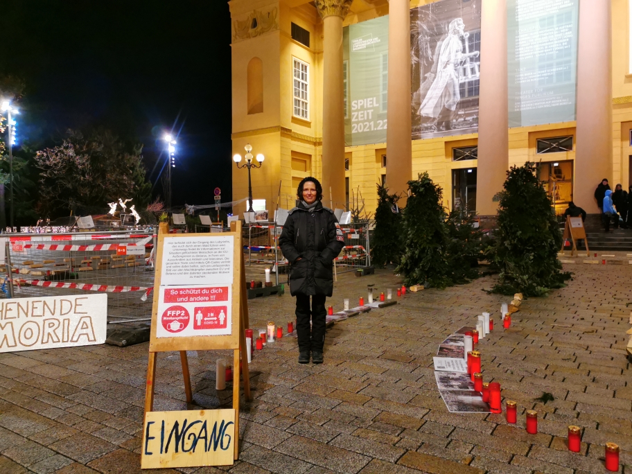 Am 2. Adventswochenende waren wir wieder am Ni-Una-Menos-Platz (ehemaliger Landestheaterplatz). Um 17.00 Uhr starten wir mit dem Programm "Geflüchtete in Belarus. Menschen als Instrument politischer Machtkämpfe?". Dieses Unrecht an der Außengrenze Europas darf nicht unsichtbar gemacht werden. Infos und die Grenze etwas erfahrbarer gemacht haben wir durch ein Labyrinth ( Danke Britta Weber) und eine "Grenze" durch Bauzäune und "Grenzbeamt*innen mit Schlagstöcken". Die Kälte tat ihr...
